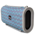 A caixa de som portátil é capaz de tocar as músicas de formato MP3 de cartões de memória e/ou USB, além de funcionar também como rádio FM. Possui função bluethooth que permite controlar o aparelho à distância. Funciona também como um amplificador de som de altíssima qualidade e potência, permitindo seu uso em nas mais diversas situações, seja em reuniões de lazer ou como instrumento para divulgação de produtos e/ou campanhas. Bateria de bom desempenho e duração.