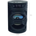 A caixa de som portátil é capaz de tocar as músicas de formato MP3 de cartões de memória e/ou USB, além de funcionar também como rádio FM. Possui função bluethooth que permite controlar o aparelho à distância. Funciona também como um amplificador de som de altíssima qualidade e potência, permitindo seu uso em nas mais diversas situações, seja em reuniões de lazer ou como instrumento para divulgação de produtos e/ou campanhas. Bateria de bom desempenho e duração.