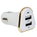 Carregador veicular USB, compatível com diversos dispositivos que utilizem a porta USB. Design ultra leve, perfeito para viagens. Carregamento turbo chegando a ser até 70% mais rápido do que os carregadores convencionais, alto nível de eficiência e multi proteção contra curto-circuito. Proporciona o carregamento de até 2 aparelhos simultâneamente.