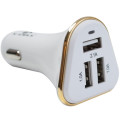 Carregador veicular USB, compatível com diversos dispositivos que utilizem a porta USB. Design ultra leve, perfeito para viagens. Carregamento turbo chegando a ser até 70% mais rápido do que os carregadores convencionais, alto nível de eficiência e multi proteção contra curto-circuito. Proporciona o carregamento de até 3 aparelhos simultâneamente.