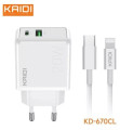 1 Kit Carregador Turbo USB-Tipo C com cabo Iphone 3.0 KD-670CL