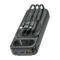 Este power bank oferece uma capacidade incrível de 30000mAh, garantindo que você nunca mais fique sem bateria quando mais precisa. Com uma potência de 22.5W, ele carrega seus dispositivos rapidamente, enquanto a luz LED integrada proporciona iluminação extra quando necessário.