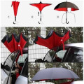 O guarda-chuva invertido possui mecanismo que facilita na hora de você abri-lo quando for sair de algum lugar, e fechá-lo quando você entrar, porque foi pensado para não deixar que a água escorra ou respingue em você. Pode ser apoiado no chão que ele permanecerá em pé, facilitando também a secagem. Tem cabo em formato de "C" para ser carregado facilmente sem precisar ficar segurando com a mão, basta apenas apoiá-lo em seu braço e você poderá segurar seus pertences, enquanto caminha na chuva. Não molha o interior do seu carro e não sai pingando, após o uso basta apenas sacudi-lo que ele estará pronto para guardar.