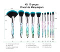 Kit de 10 pincéis com bolsinha, indicado para uso profissional e pessoal. Produto de ótima qualidade, feitos a partir de fibras sintéticas indicado para para diferentes aplicações de maquiagem. Macios e confortáveis facilitando o manuseio.
