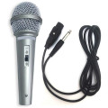 Microfone dinâmico com fio, especifico para uso doméstico em videokês ou pequenas palestras profissionais.