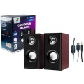 Caixa de som com acabamento em madeira para Computadores, Notebooks, Celulares e outros dispositivos com saída P2. Fabricada em material resistente, possuem fácil instalação e desing compacto e atraente.