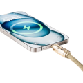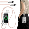 Além de suporte, é também um cabo de dados trançado com potência de até 240W, oferecendo carregamento rápido e eficiente. Sua estrutura em tecido de nylon entrelaçado de alta densidade garante durabilidade e toque macio, enquanto os conectores em liga de alumínio reforçam sua resistência.